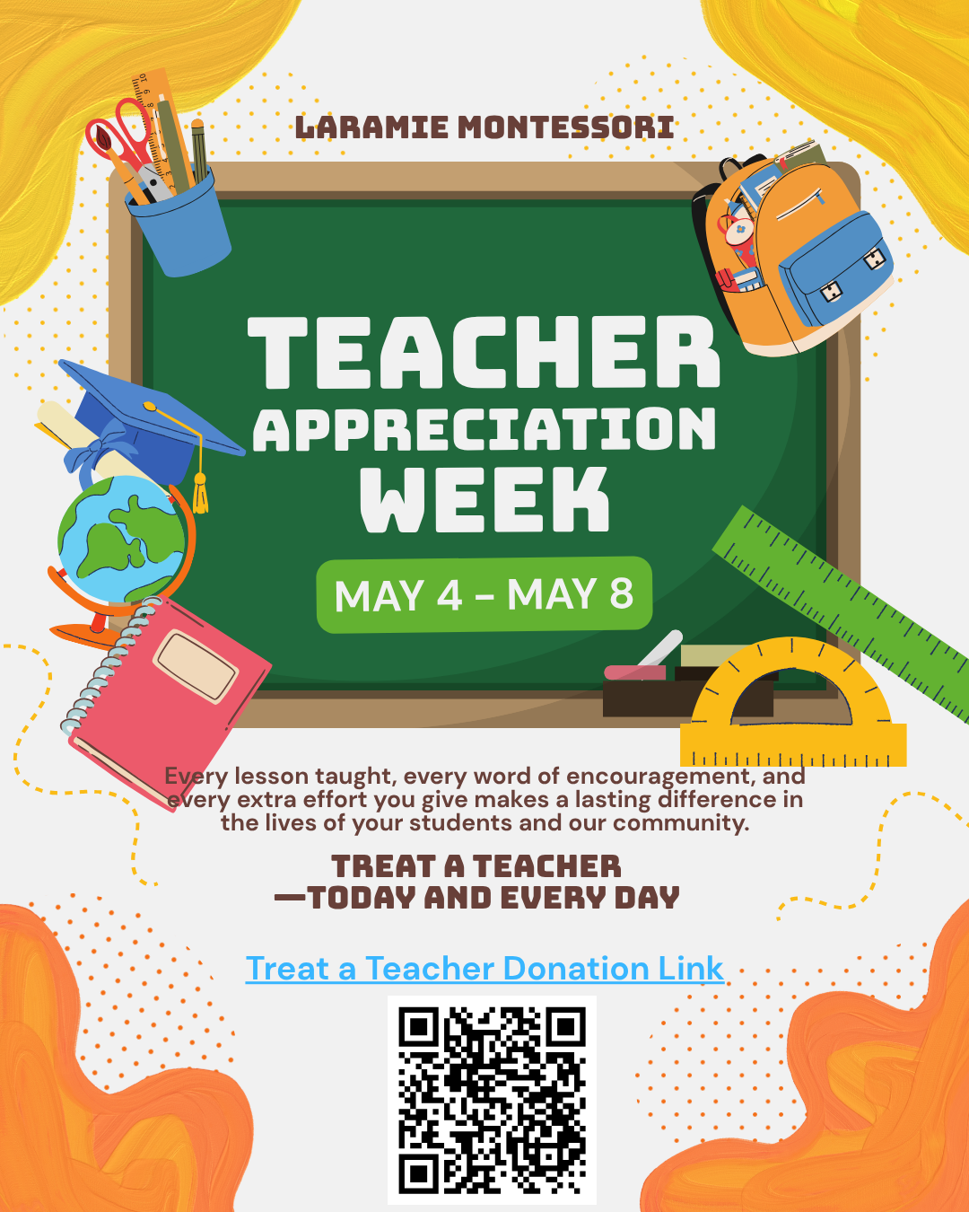 Friends of Laramie Montessori’s Treat a Teacher fundraiser was so successful, they have decided to keep it going all year long! Any time you would like to donate, your contribution will go towards the Laramie Montessori Staff Appreciation Fund, so that we can celebrate our incredible staff all year long!