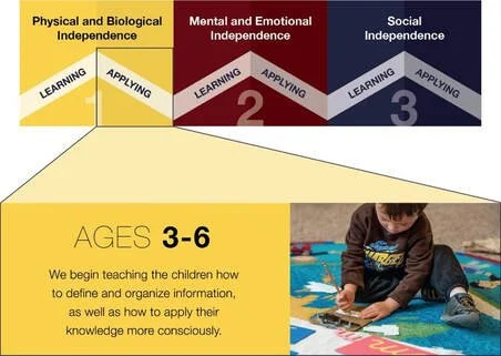 The awakening of the unconscious mind marks the transition from toddlerhood to preschool. These young children begin to individuate, moving from generalizations (e.g., all women are “mom”) to specificity (e.g., “my mom”). They seek out social connections in a new way, now interested in developing friendships and working together with others. They begin practicing the social customs they absorbed in their first years. This conscious awareness also introduces greater complexity to the skills they acquired in their first years. Still, like their younger selves, these children thrive from a careful mixture of routine and independence.